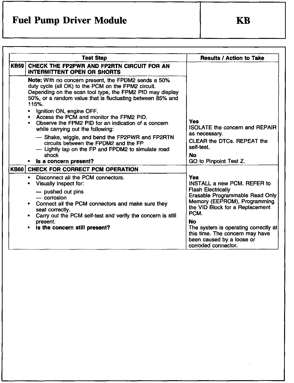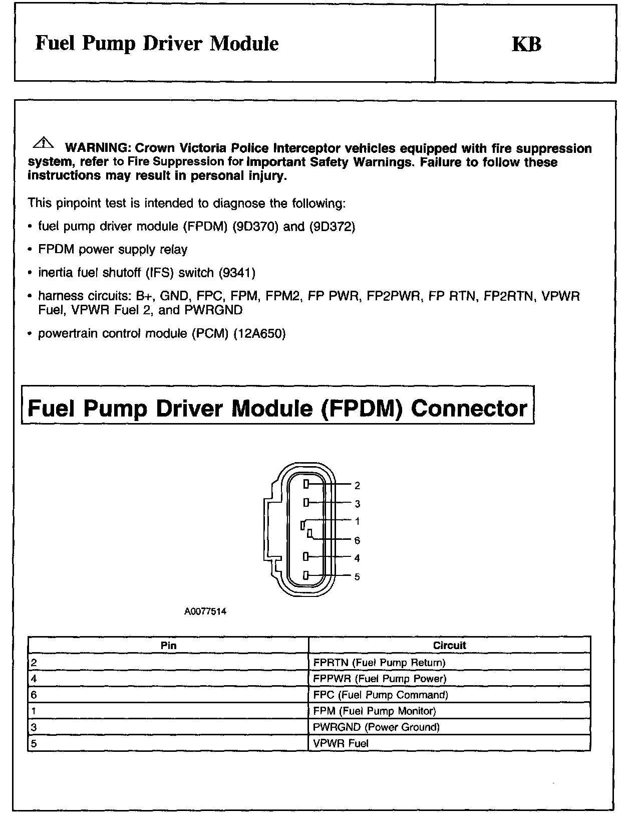 PINPOINT TEST KB: FUEL PUMP DRIVER MODULE