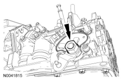 5. NOTICE: Do not use air tools on this nut. Hold the manual control lever while tightening the manual control lever nut, or damage to the manual control lever shaft or the Transmission Range (TR) sensor could occur.