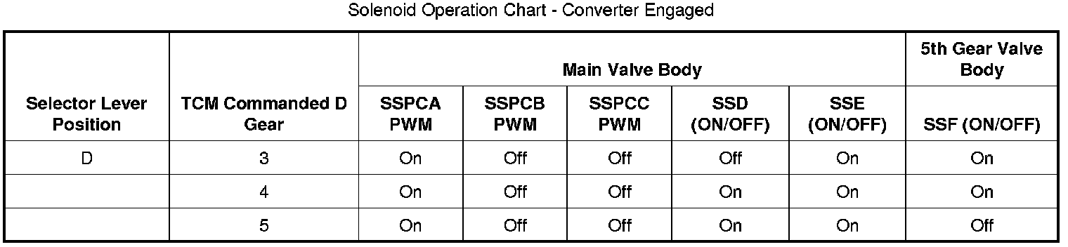 Pressure Control Solenoid A (PCA) and Pressure Control Solenoid B (PCB) PWM solenoid percentage varies through all gears.