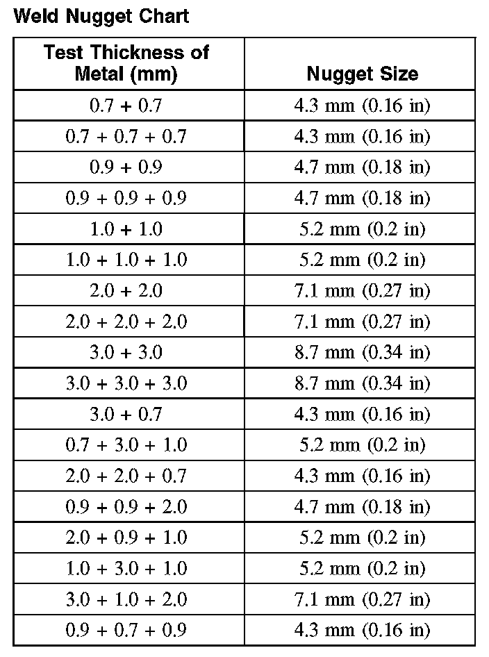 Weld Nugget Chart: