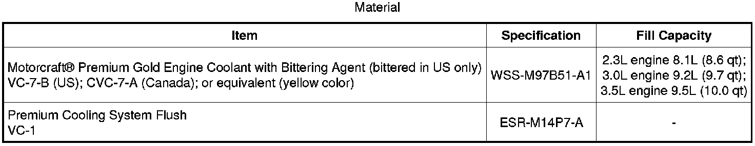 Home >> Ford >> 2009 >> Fusion FWD L4-2.3L >> Repair and Diagnosis >> Specifications >> Mechanical Specifications >> Cooling System >> System Specifications >> Material