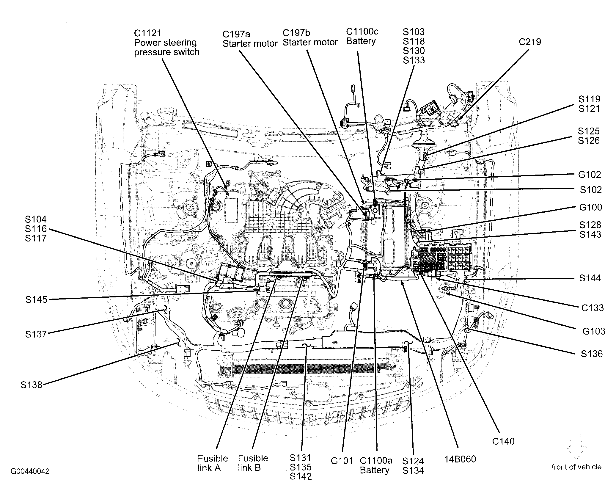 Fusible Link B (2.3L) Right side of engine. See Figure.