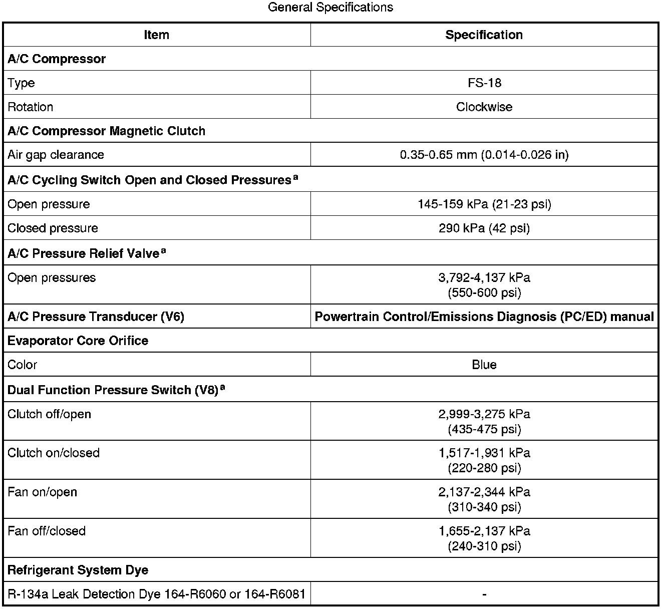Home >> Ford >> 2009 >> Mustang V6-4.0L >> Repair and Diagnosis >> Heating and Air Conditioning >> Specifications >> Climate Control System >> General Specifications