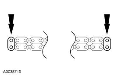 Position the RH timing chain on the camshaft sprocket. Make sure the camshaft sprocket timing mark is aligned with the colored (marked) chain link.