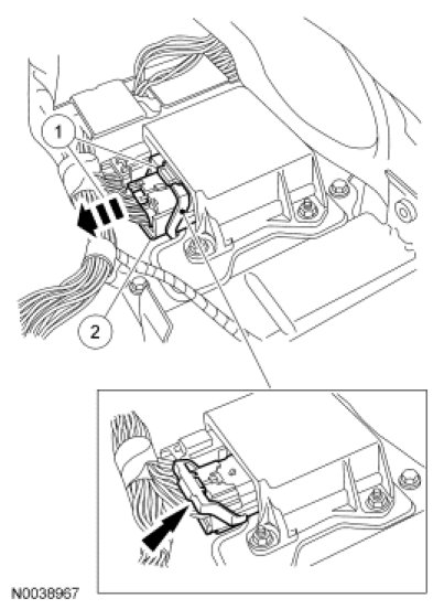 1. WARNING: Always tighten the fasteners of the restraints control module (RCM) and impact sensor (if equipped) to the specified torque. Failure to do so may result in incorrect restraint system operation, which increases the risk of personal injury or death in a crash.