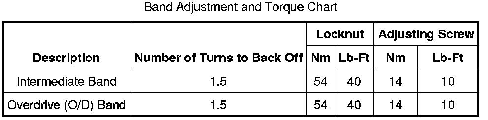 Band Adjustment And Torque Chart: