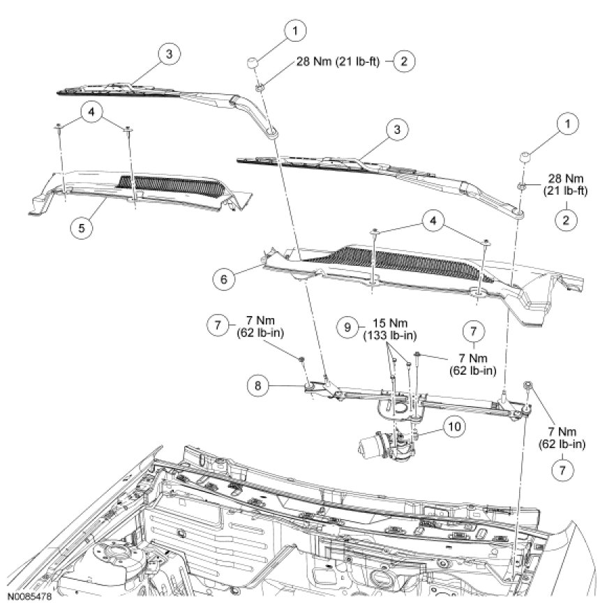 Wiper and Washer System - Exploded View