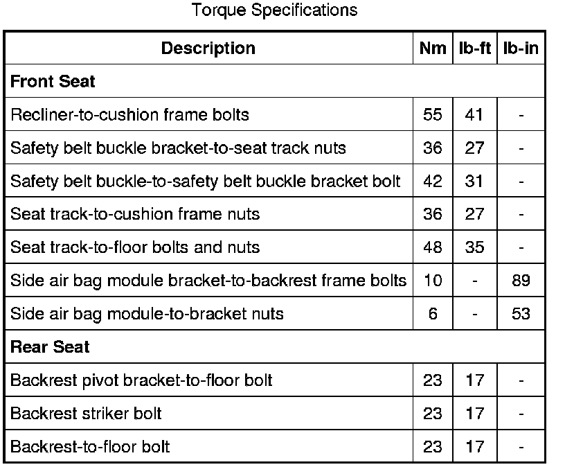 Seats: Specifications