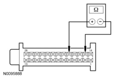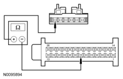 - Measure the resistance between HVAC module C294a-5, circuit 436 (RD/LG) and HVAC module C294a-15, circuit 438 (RD/WH).