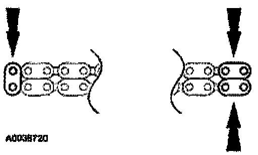 If the colored links are not visible, mark one link on one end and 2 links on the other end, and use as timing marks.
