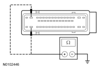 - Measure the resistance between the ABS module C135-16, circuit 1205 (BK), harness side and ground; and between the ABS module C135-45, circuit 1205 (BK), harness side and ground.