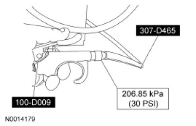 12. Apply a maximum of 206.85 kPa (30 psi) to the open end of the vacuum/pressure hose from the Rubber Tip Air Nozzle. Transmission fluid will immediately start flowing out of the Fluid Transporter/Evacuator/Injector into the transmission fluid pan.