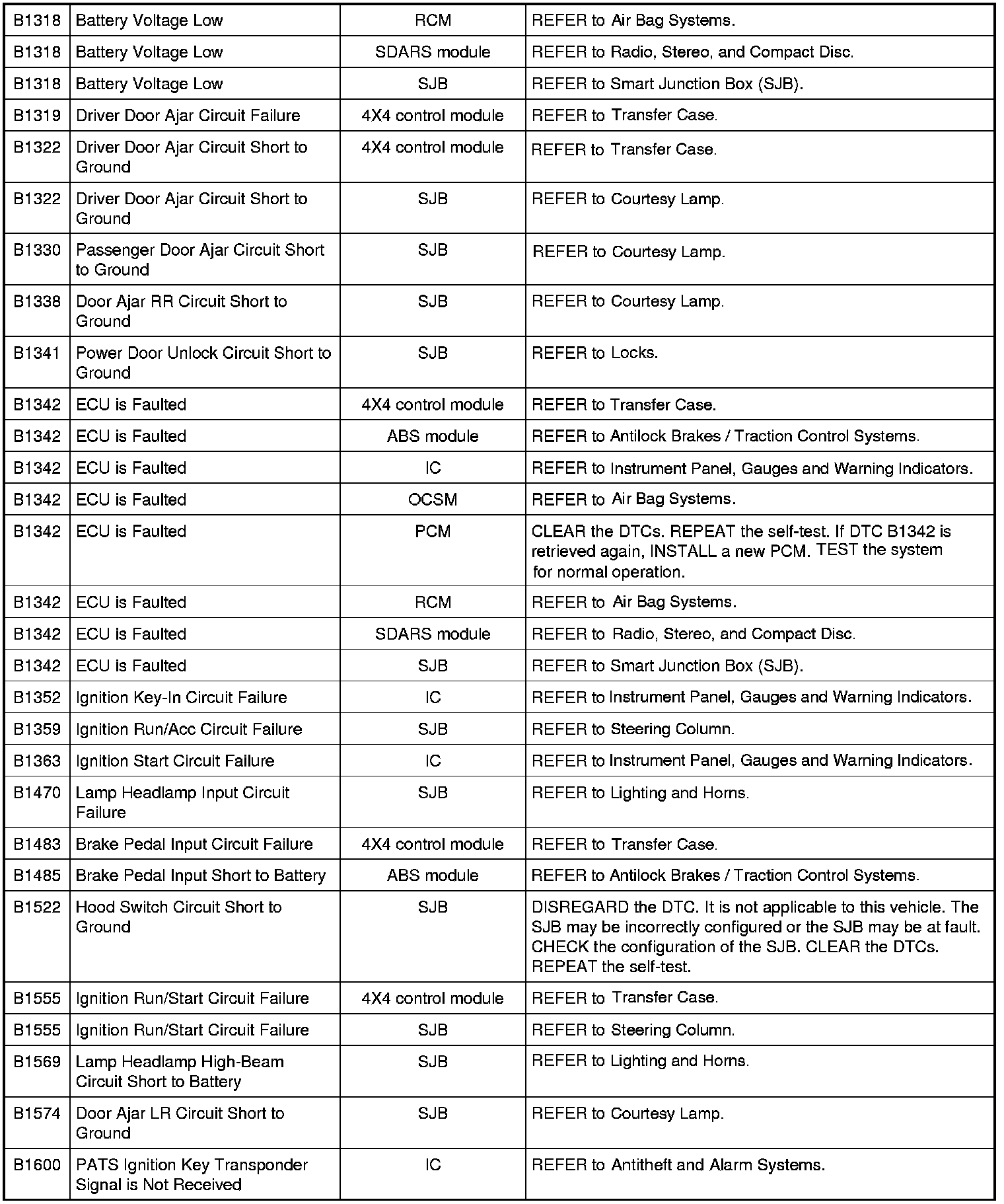 NOTE: Most powertrain (P-code) DTCs are diagnosed in the Computers and Control Systems Information. If the P-code retrieved is not listed below, refer to the Computers and Control Systems Information to continue diagnostics.