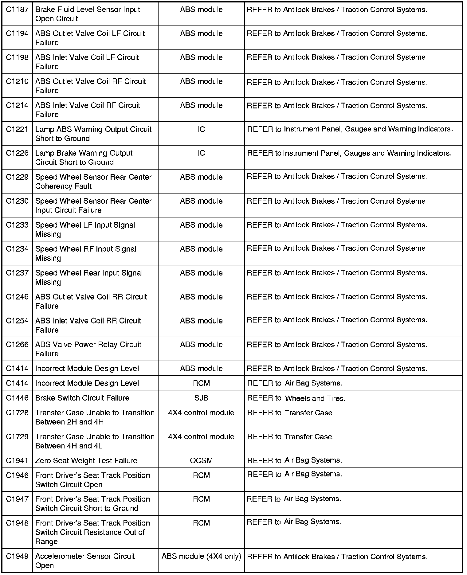 Diagnostic Trouble Code (DTC) Chart