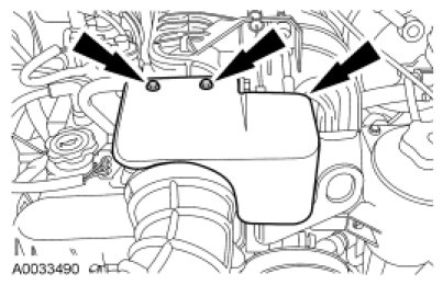 3. Remove the 3 bolts and the accelerator control splash shield.