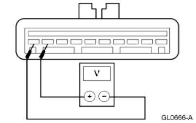 - Measure the voltage between the speed control actuator C122-9, circuit CES09 (VT/OG), harness side and the speed control actuator C122-10, circuit GD123 (BK/GY), harness side.