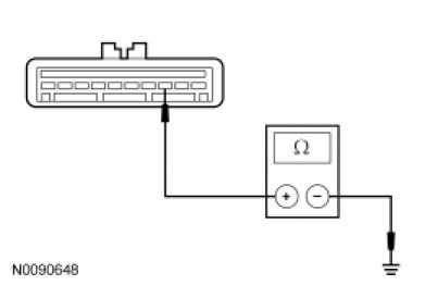 - Measure the resistance between the speed control actuator C122-3, circuit VMC05 (VT/OG), harness side and ground.