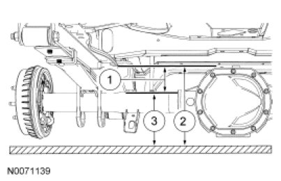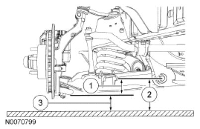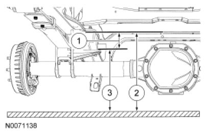 1. To obtain rear ride height, measure the distance between points 2 and 3. For additional information, refer to Specifications.