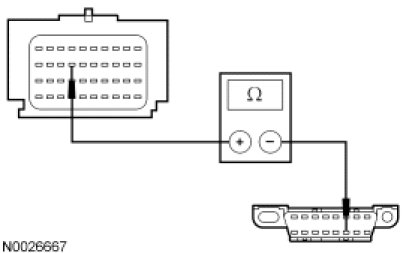 - Measure the resistance between the RCM C2041a-18, circuit VDB04 (WH/BU), harness side and the Data Link Connector (DLC) C251-6, circuit VDB04 (WH/BU), harness side.