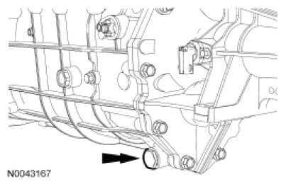 4. NOTE: Fill the transmission with the vehicle on a level surface.
