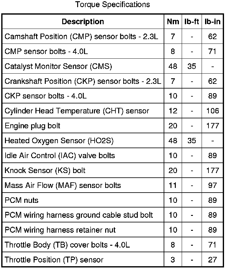 Torque Specifications