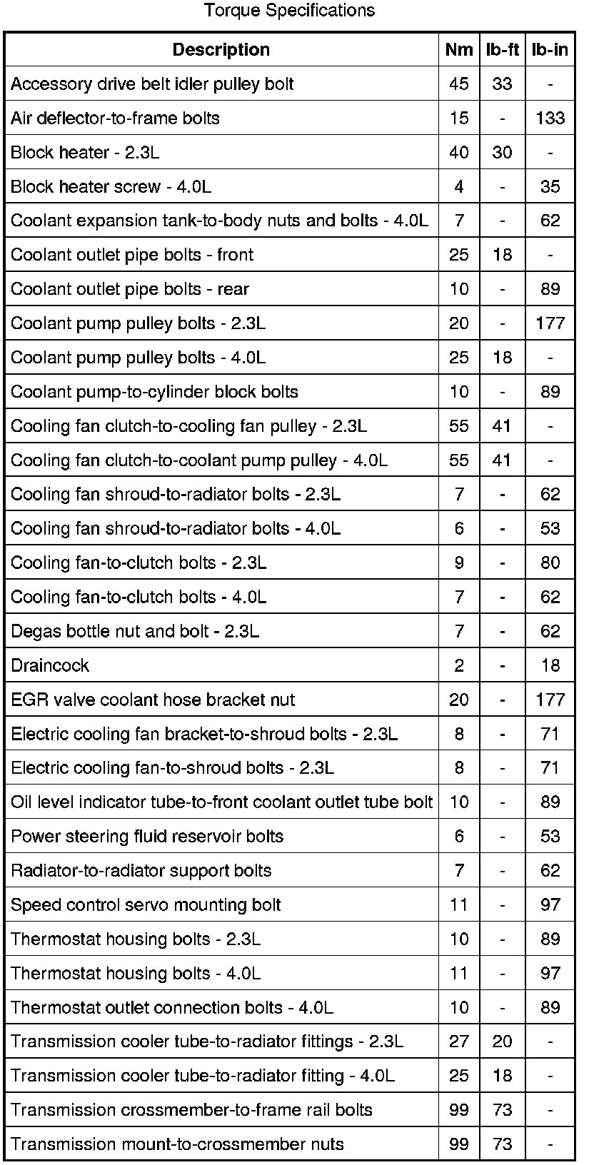 Torque Specifications