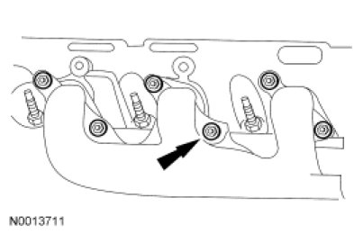 Install a new gasket, the RH exhaust manifold and the 6 new nuts.