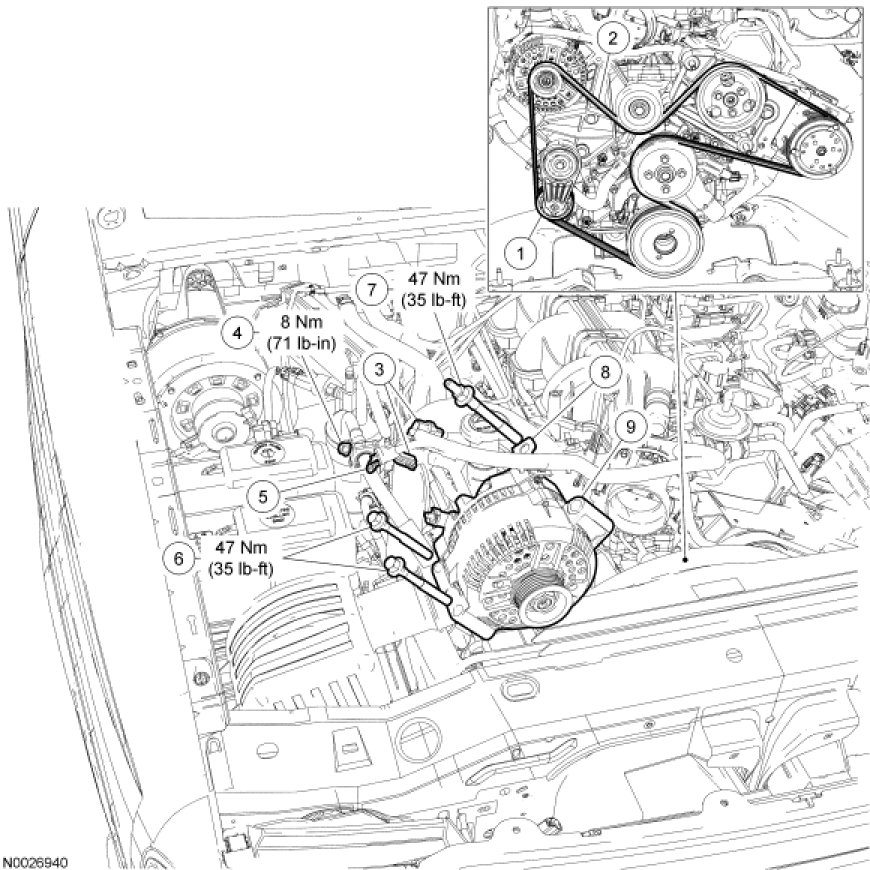 - To install, tighten to 47 Nm (35 lb-ft).