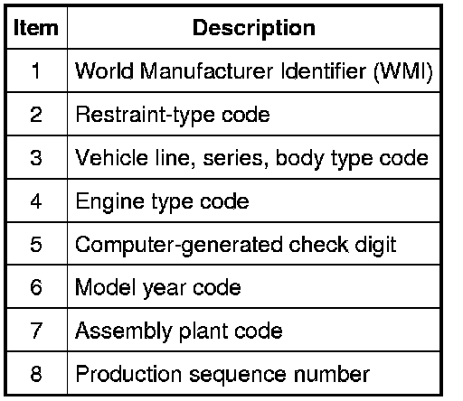 Positions 5 through 7 indicate vehicle line and series.