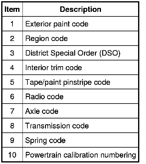 Powertrain calibration information is printed in the lower right corner of the VC. Only the base calibration information is printed. Revision levels will not appear, however, they can be obtained through a scan tool using the most current software revision.
