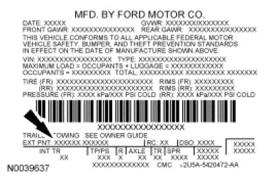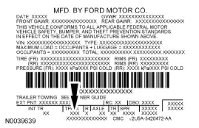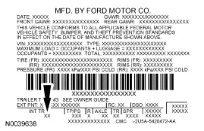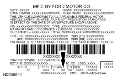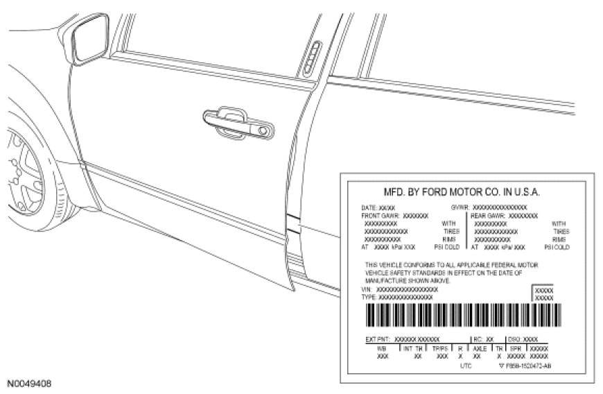 Vehicle Certification (VC) Label - Ford Taurus X