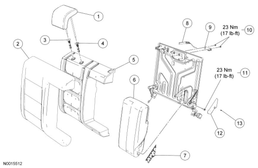 Seat - Exploded View, Second Row, Taurus, Sable