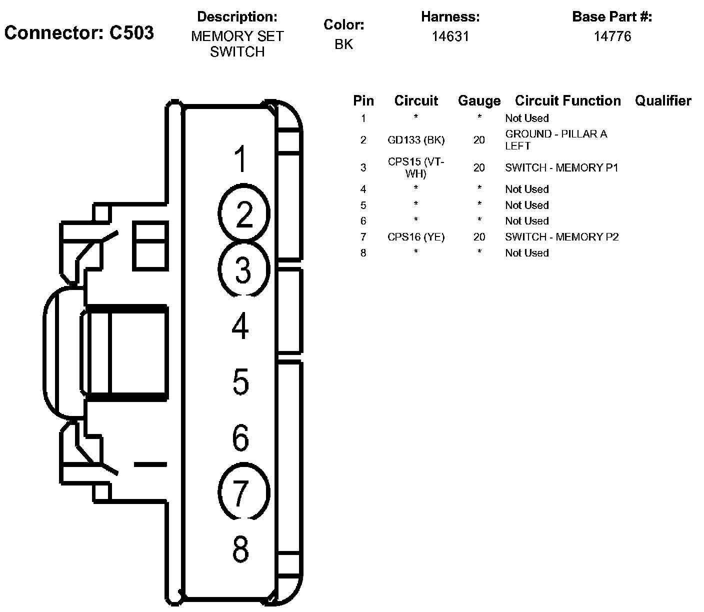 Home >> Ford >> 2009 >> Taurus AWD V6-3.5L >> Repair and Diagnosis >> Diagrams >> Connector Views >> Memory Positioning Switch