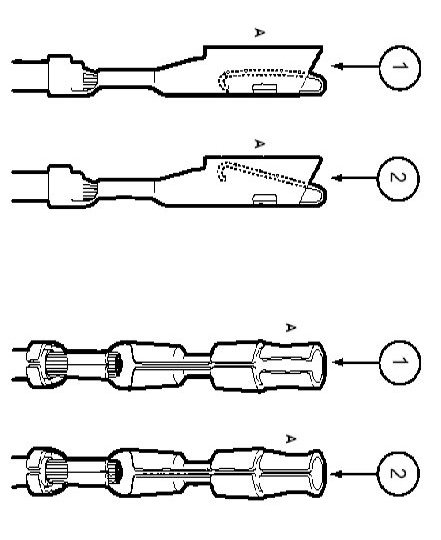 Insert the correct mating terminal (Location A) from the service kit and feel for a loose fit.