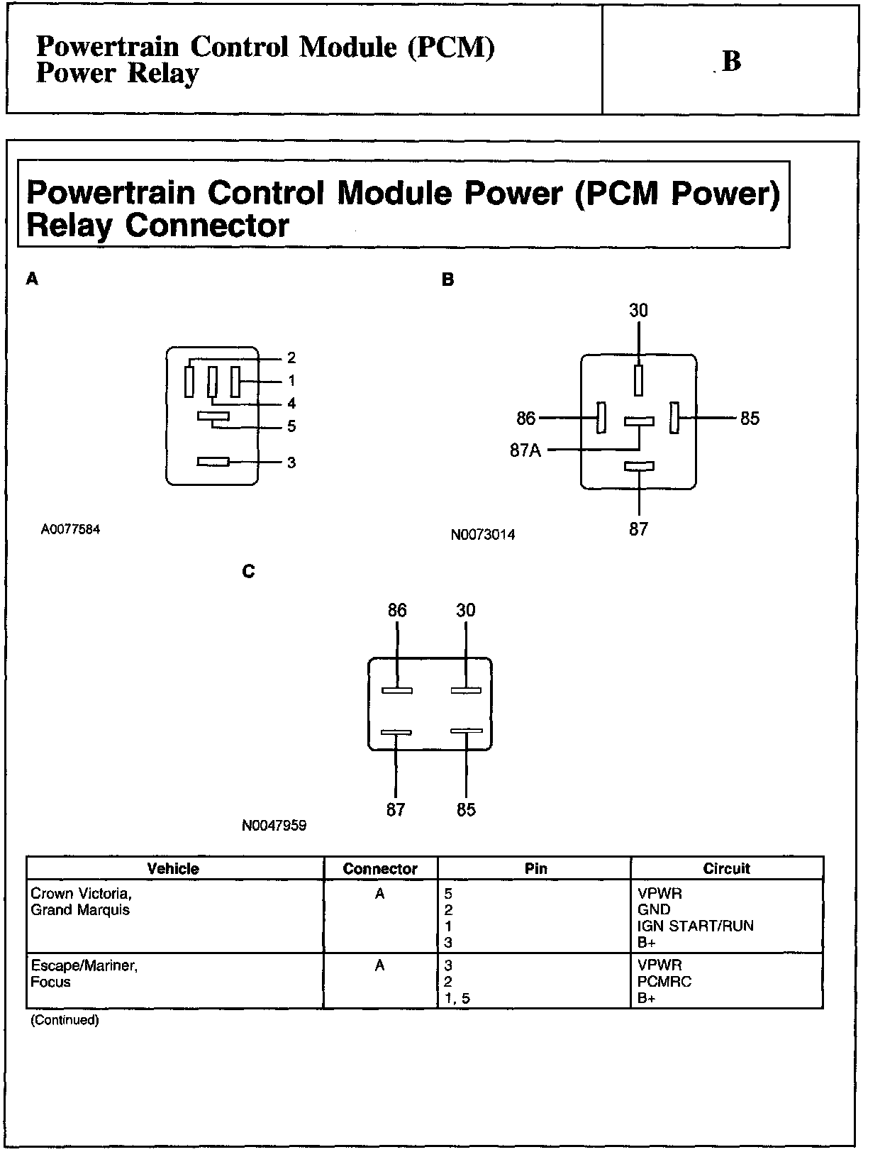 PINPOINT TEST B: POWERTRAIN CONTROL MODULE (PCM) POWER RELAY