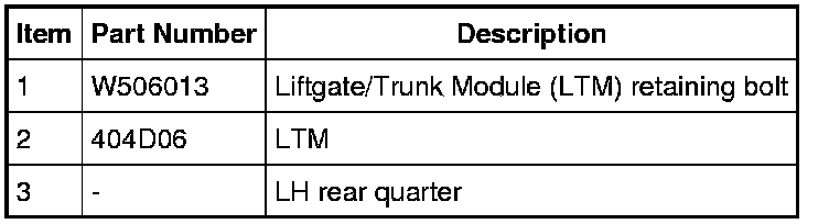 3. NOTICE: Do not pull the Liftgate/Trunk Module (LTM) straight up or damage may occur to the mounting mechanism.