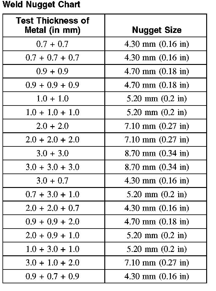 Weld Nugget Chart: