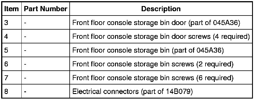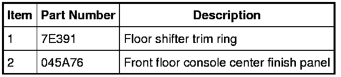 4. Remove the front floor console center finish panel by pulling straight up to disengage the clips.