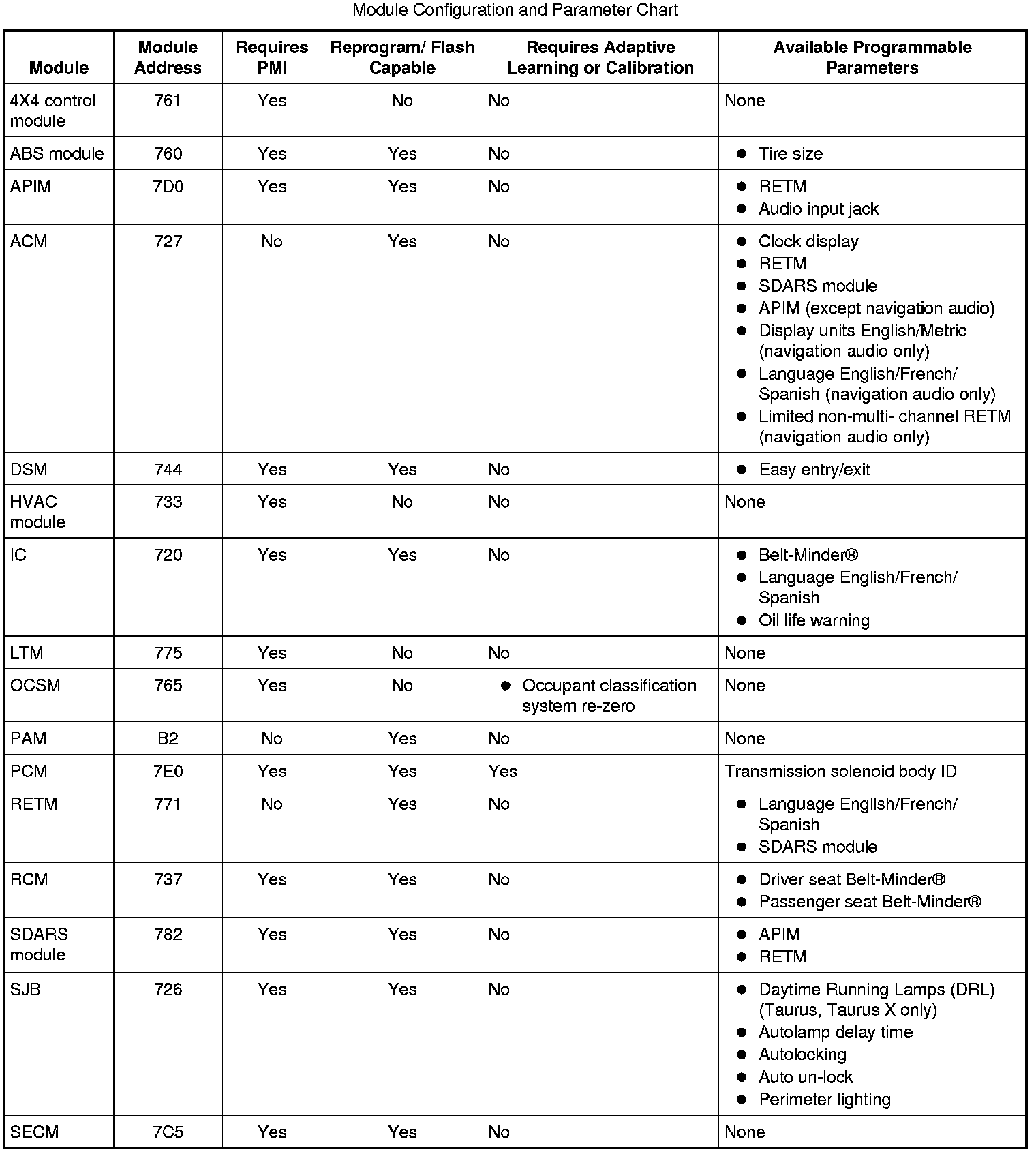 Home >> Ford >> 2009 >> Taurus FWD V6-3.5L >> Repair and Diagnosis >> Powertrain Management >> Computers and Control Systems >> Information Bus >> Testing and Inspection >> Initial Inspection and Diagnostic Overview >> Module Configuration >> Principles of Operation