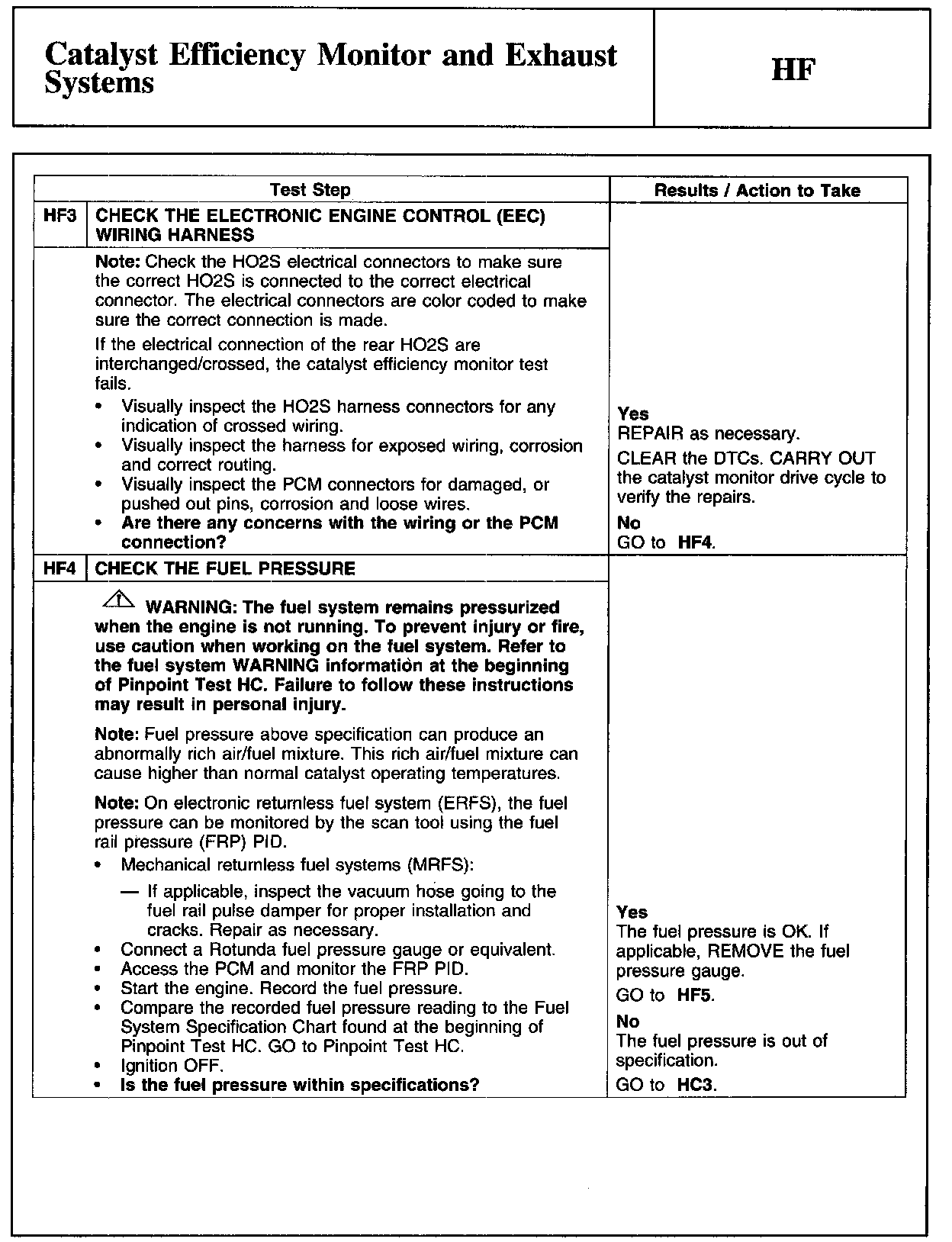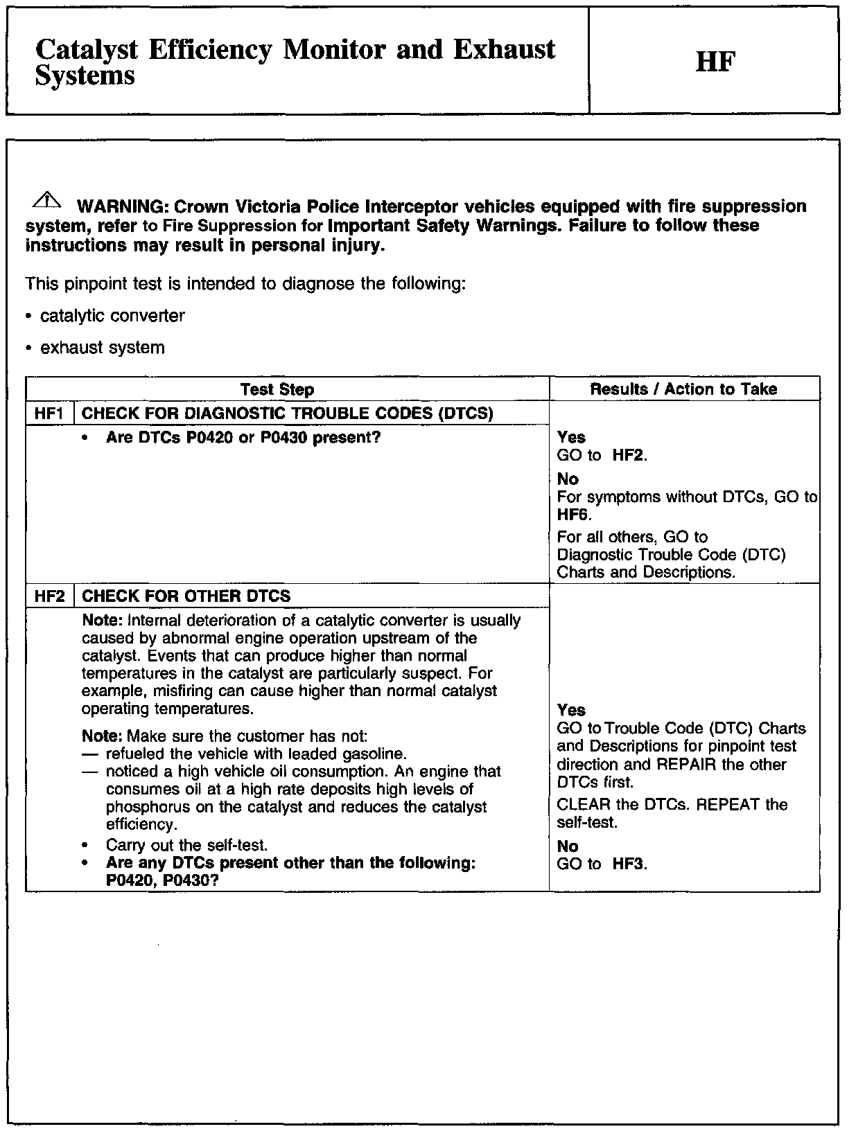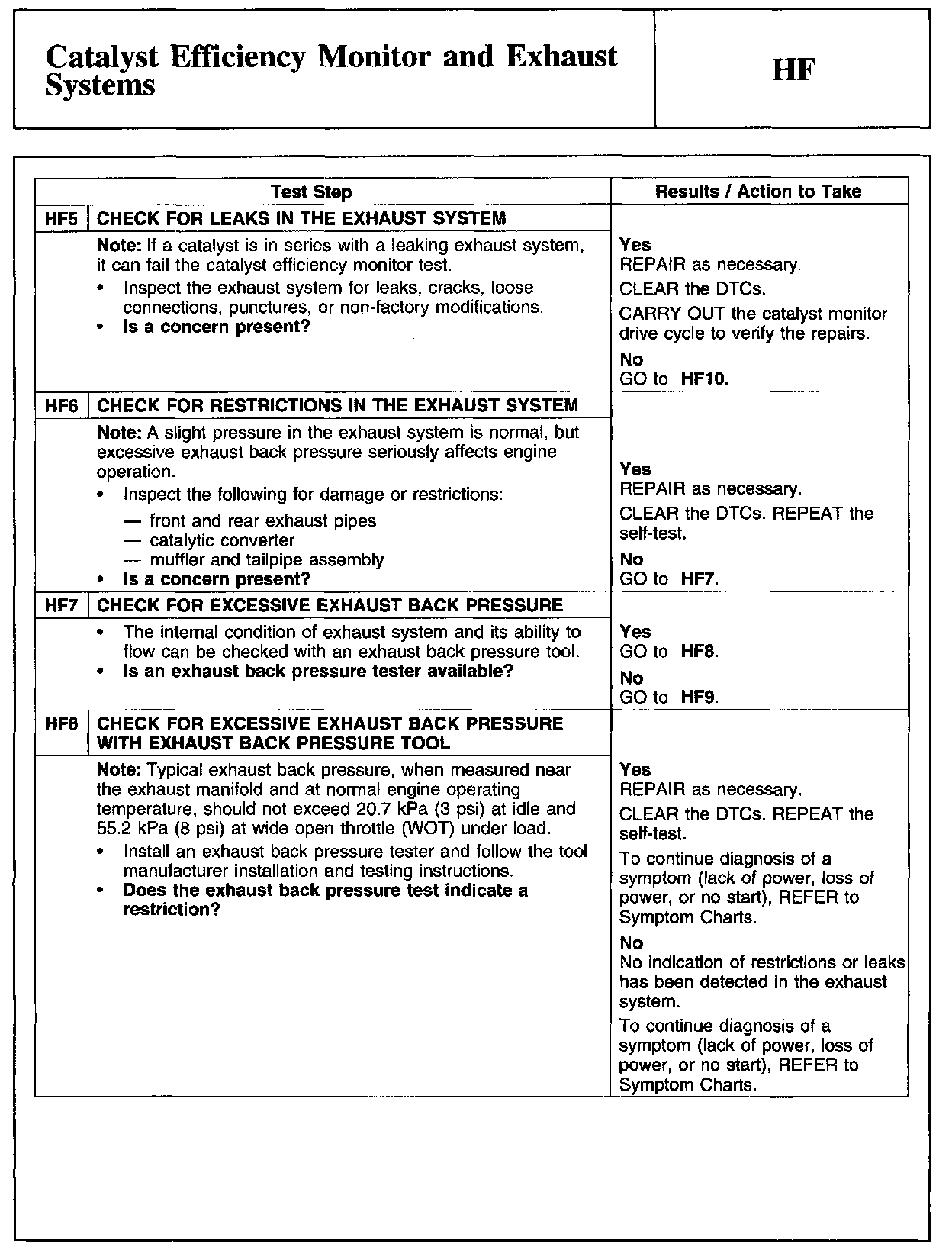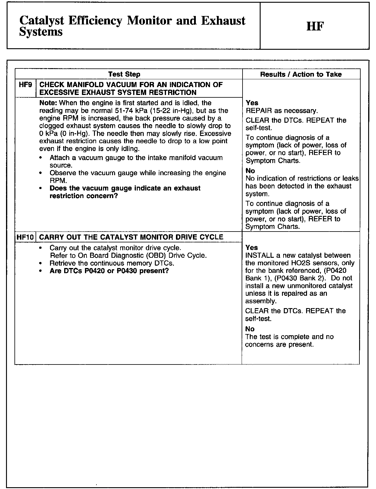 HF - Catalyst Efficiency Monitor and Exhaust Systems