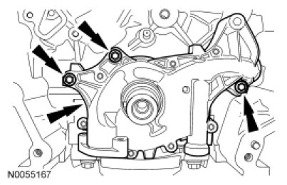 Install the oil pump and the 3 bolts.