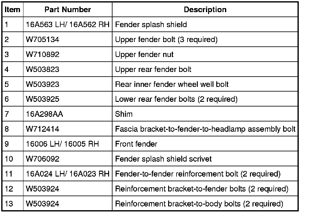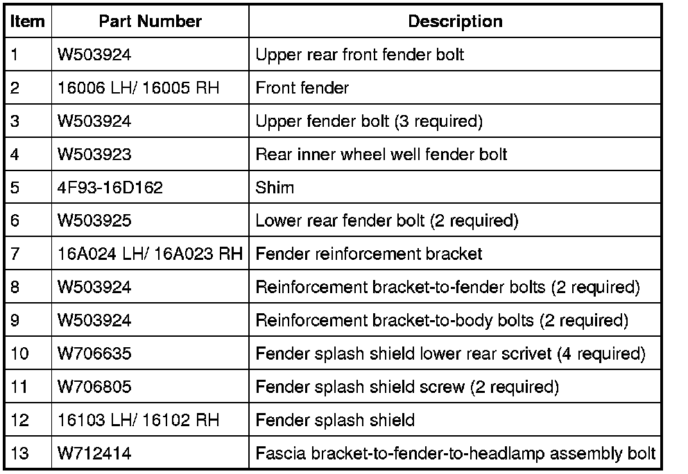 Front End Body Panels - Exploded View