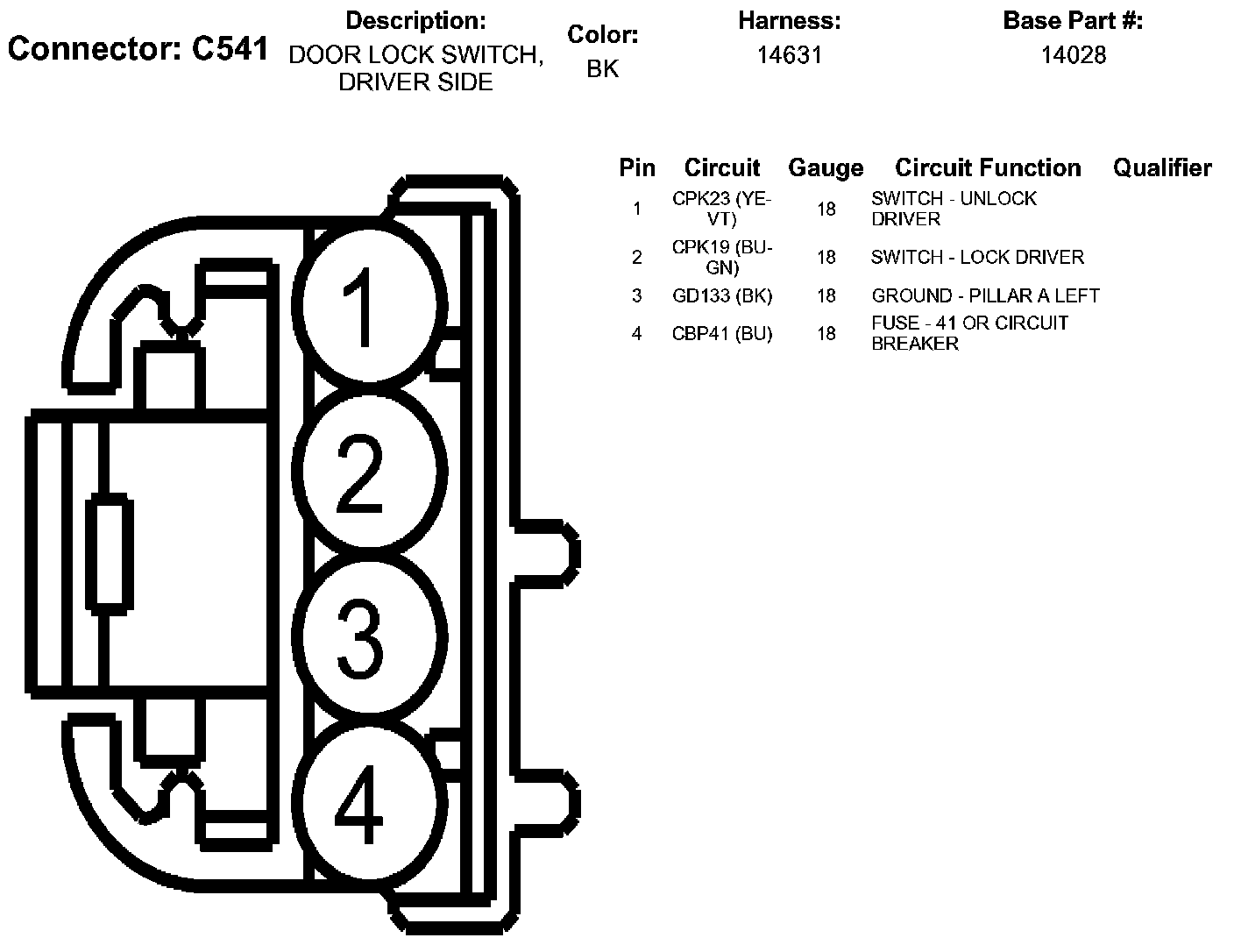Door Lock Switch, Driver Side