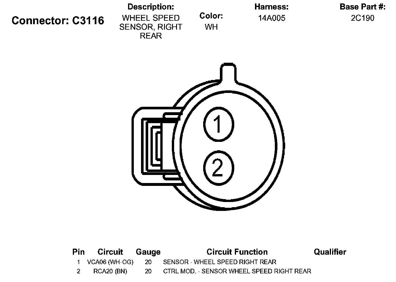 Wheel Speed Sensor, Right Rear