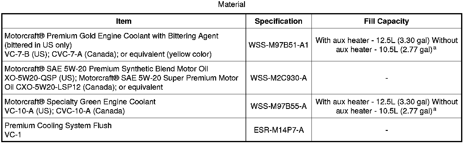 Home >> Ford >> 2009 >> Taurus X FWD V6-3.5L >> Repair and Diagnosis >> Specifications >> Mechanical Specifications >> Cooling System >> System Specifications >> Material
