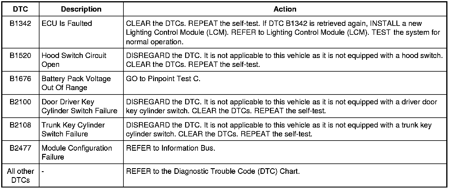 Lighting Control Module (LCM) DTC Chart