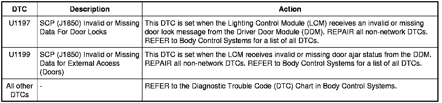 Lighting Control Module (LCM) DTC Chart
