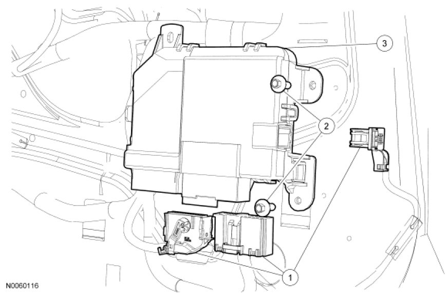 NOTE: Prior to the replacement of the Driver Door Module (DDM), it is necessary to upload the module configuration information to the scan tool. This information must be downloaded into the new DDM after installation. For additional information, refer to Information Bus.