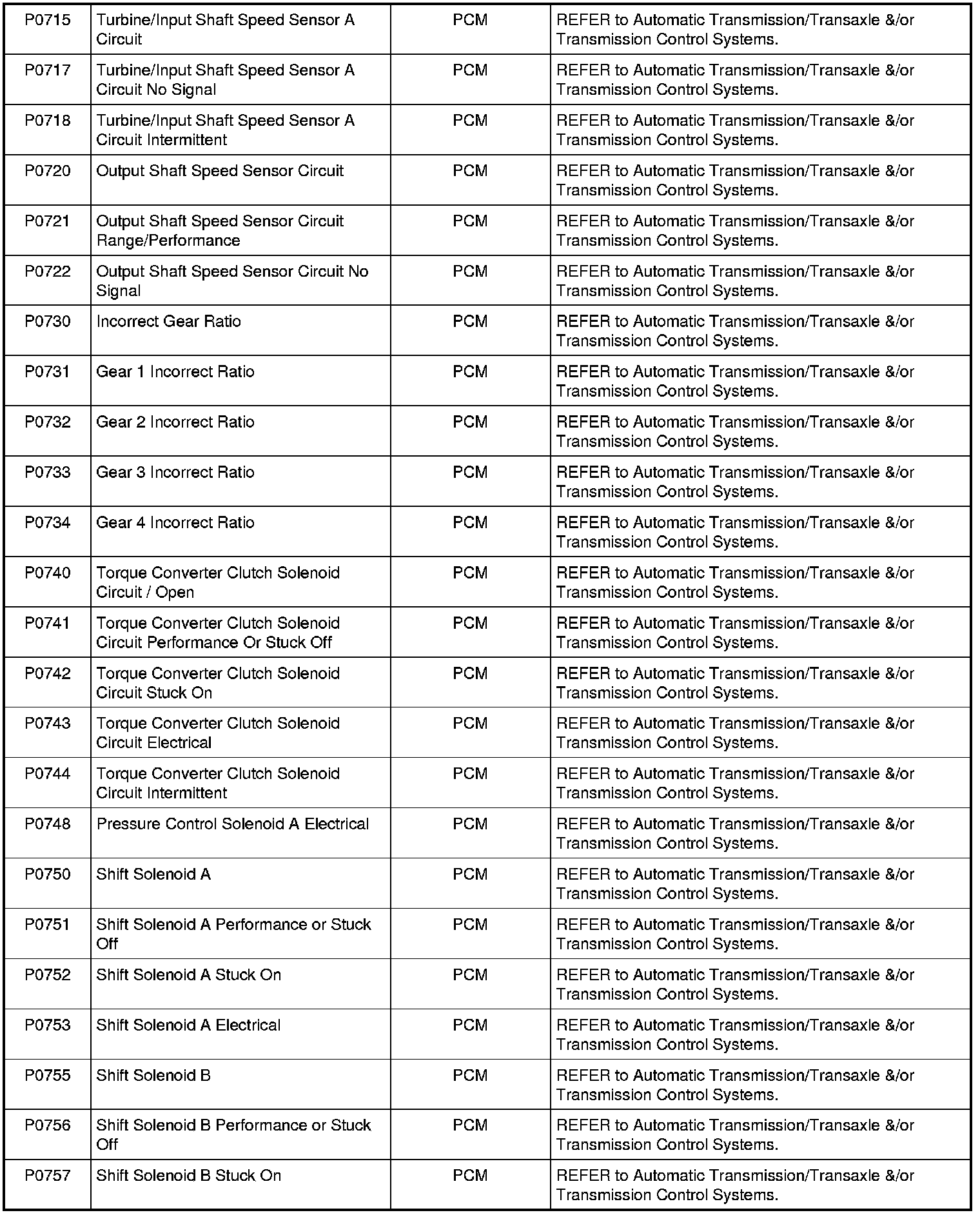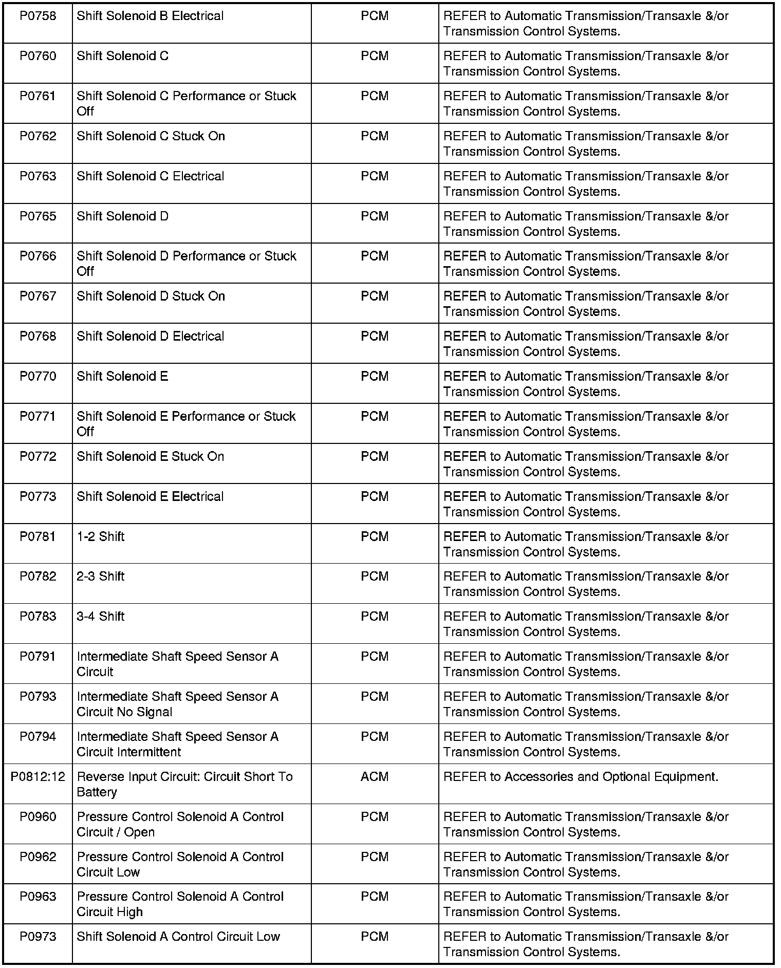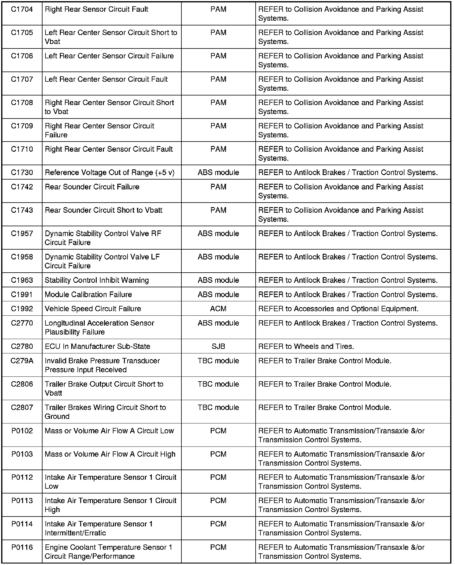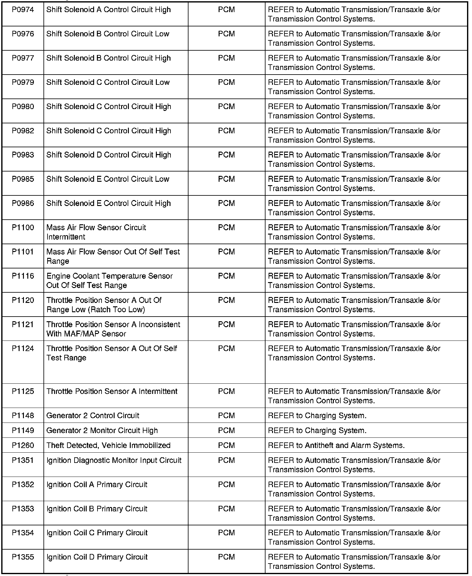 NOTE: Most powertrain (P-code) DTCs are diagnosed in Computers and Control Systems Information. If the P-code retrieved is not listed below, refer to Computers and Control Systems Information to continue diagnostics.