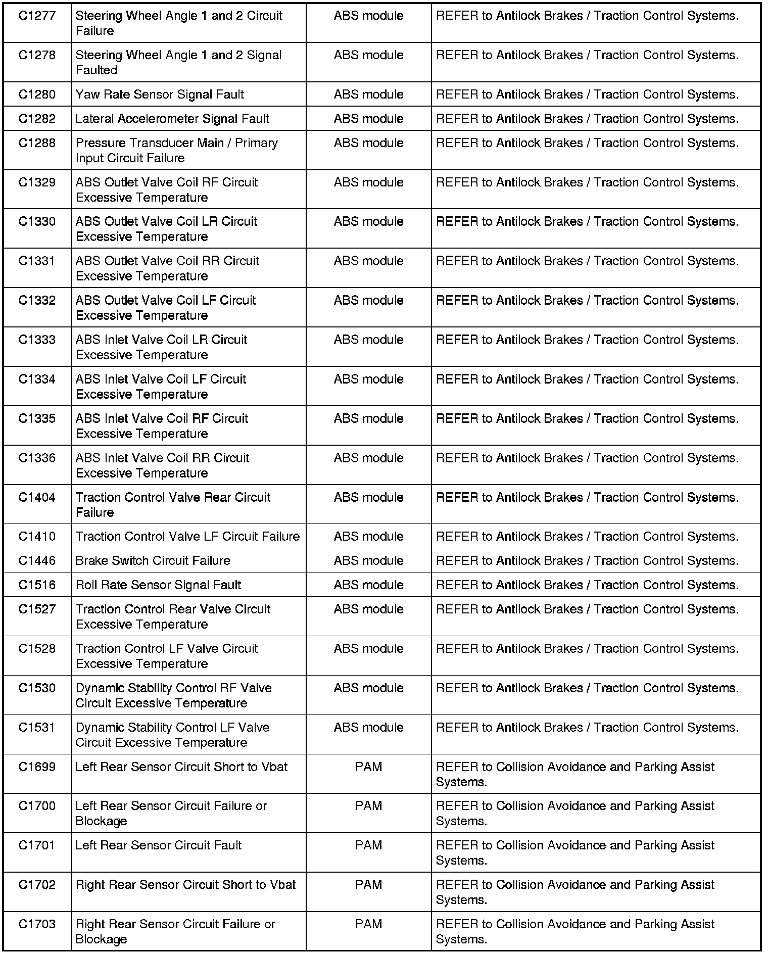 NOTE: Some of these modules utilize a 5-character DTC followed by a 2-character failure-type code. The failure-type code provides information about specific fault conditions such as opens, or shorts to ground. Continuous memory DTCs have an additional 2-character DTC status code suffix to assist in determining DTC history.